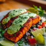 - Assemble the Dish: On a serving plate, place a generous scoop of the mashed avocado. Top it with the cooked Cajun salmon. Drizzle with any leftover marinade if desired, and garnish with lime wedges and fresh cilantro.