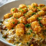 Keywords: For crispy tater tots, ensure they are completely frozen before adding them to the casserole. You can customize the recipe by adding different vegetables or using a blend of cheeses.