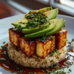 - Assemble the Stack: In a serving dish, start with a layer of rice, followed by a layer of crispy tofu, then add a layer of avocado. Repeat the layers until all ingredients are used up, finishing with a layer of avocado on top.