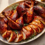 The Maple Butter Glazed Turkey Recipe is a succulent roasted turkey enveloped in a glossy, maple-infused butter glaze. This dish stands out not only for its stunning appearance but also for the way it marries the sweetness of maple syrup with the rich, savory flavor of turkey. Unlike traditional turkey recipes that rely heavily on herbs and spices, this recipe focuses on creating a harmonious balance between sweet and savory. The glaze seeps into the meat, resulting in a juicy, tender turkey that is bursting with flavor. If you’re familiar with honey-glazed ham, this recipe offers a similar delightful sweetness but with the heartiness of turkey, making it a perfect choice for those who want to try something new while still honoring familiar tastes.