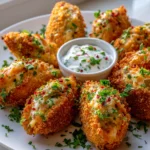 - Serve: Once the Cheesy Jalapeno Ranch Chicken Poppers are perfectly golden and cooked, transfer them to a serving platter. Serve immediately with the creamy dip on the side.