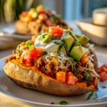 Enjoy a delicious twist on taco night with these Taco Stuffed Sweet Potatoes, featuring a savory ground beef filling and vibrant toppings. This wholesome meal is easy to prepare and perfect for busy weeknights.