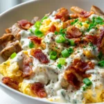 Indulge in these Low Carb Chicken Beef Bacon Ranch Egg Bowls, a hearty and satisfying meal that combines tender meats with fluffy eggs and creamy ranch dressing. Perfect for any time of day, this dish is both delicious and low in carbs.