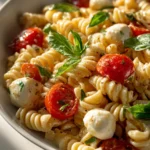 This Creamy Caprese Pasta Salad is a vibrant explosion of fresh flavors, featuring ripe cherry tomatoes, tender mozzarella pearls, and fragrant basil. Tossed with al dente pasta and enveloped in a dreamy, creamy dressing, it’s perfect for potlucks, summer BBQs, or a delightful weeknight meal.