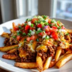 Keywords: Ensure your fries are crispy to prevent sogginess. Let the taco beef simmer with beef broth for richer flavor. Layer cheese over hot fries first to melt perfectly, and add fresh toppings just before serving.